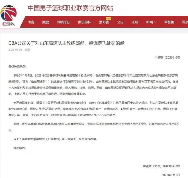 最后一个消息,分享一下邱彪被罚的情况。各位球迷都知道,在最近结束的一场常规赛中,山东男篮的主教练邱彪因为对着裁判咆哮,最终被直接驱逐出场。而如今官方更是直接公布了罚款,邱彪被重罚几万,还停赛两场,对整个山东男篮的影响应该是很大的。