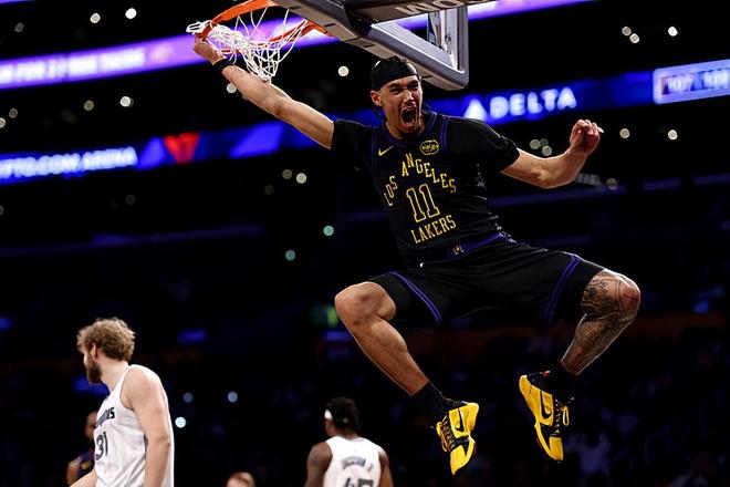 本场比赛中,湖人的替补中锋贾克森-海斯(Jaxson Hayes)面对着自己的老东家的表现只能算是马马虎虎。海斯全场出场16分06秒,投篮2中1,罚球1中0,得到了2分3篮板1抢断1盖帽的数据,还有2次失误和2次犯规,正负值为-5。海斯在进攻端缺乏足够的存在感,没有得到太多的分数,没有为球队提供基本的帮助和支持。进攻端表现平平也就算了,海斯在防守端的表现也是无法令人感到满意的,他在防守选位和防守意识方面存在着不小的问题,他在防守端也是同样没有办法起到更大的作用的。总体来看,海斯在本场比赛中的表现确实是差了一些,在攻防两端都很难起到更大的作用,在场上时球队的局面也是比较一般的。还好湖人先发中锋德安德烈-艾顿(DeAndre Ayton)本场比赛表现不错,海斯的低迷状态也没有影响到球队的胜利。