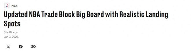 准备开抢!距离交易截止日不足一月之际,NBA交易市场又一次活跃起来,美媒《bleacherreport》也根据各队动态更新公布出交易市场TOP10大鱼,其中哈登排第5,勇士盯上数人。