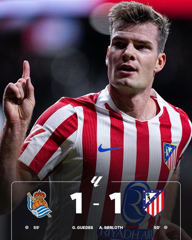 然而好景不长,第55分钟,久保建英送出精准传中,格德斯停球抽射一气呵成,皇家社会迅速扳平比分。此后马竞进攻逐渐乏力,未能再次改写比分,最终1-1收场。