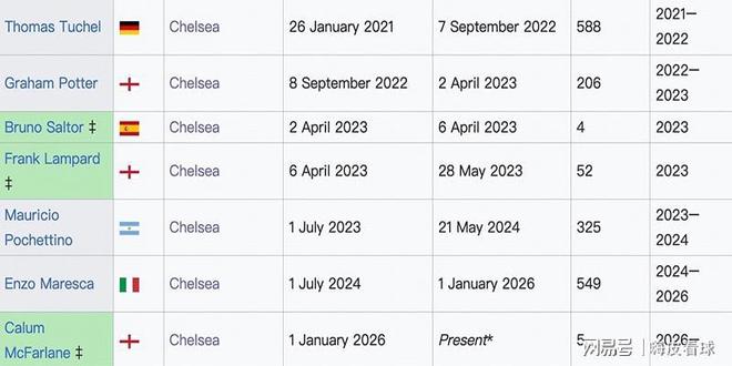 自从欧冠夺冠后,短短几年间,切尔西更换了数名主帅,其中,图赫尔、波特、兰帕德、波切蒂诺和马雷斯卡,是执教时间比较长的,还有几人,是时间很短的临时主教练。